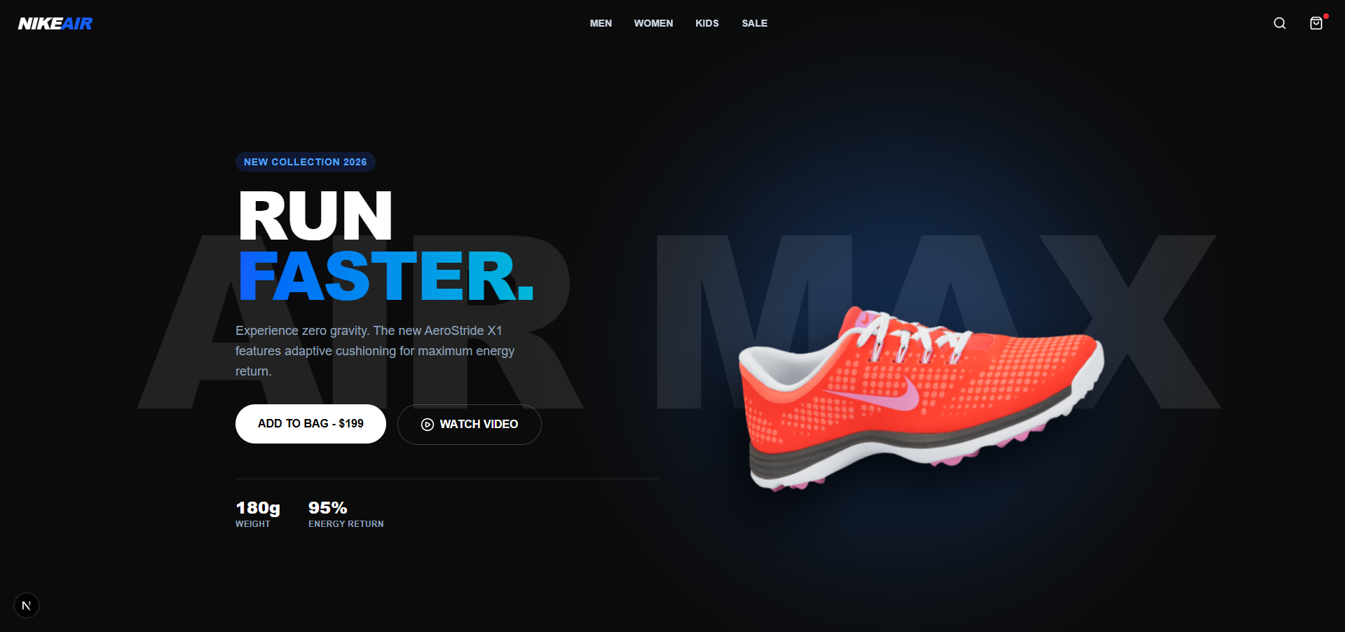 Dynamic landing page for a sports brand with smooth scroll animations and product showcases. Optimized for conversion.